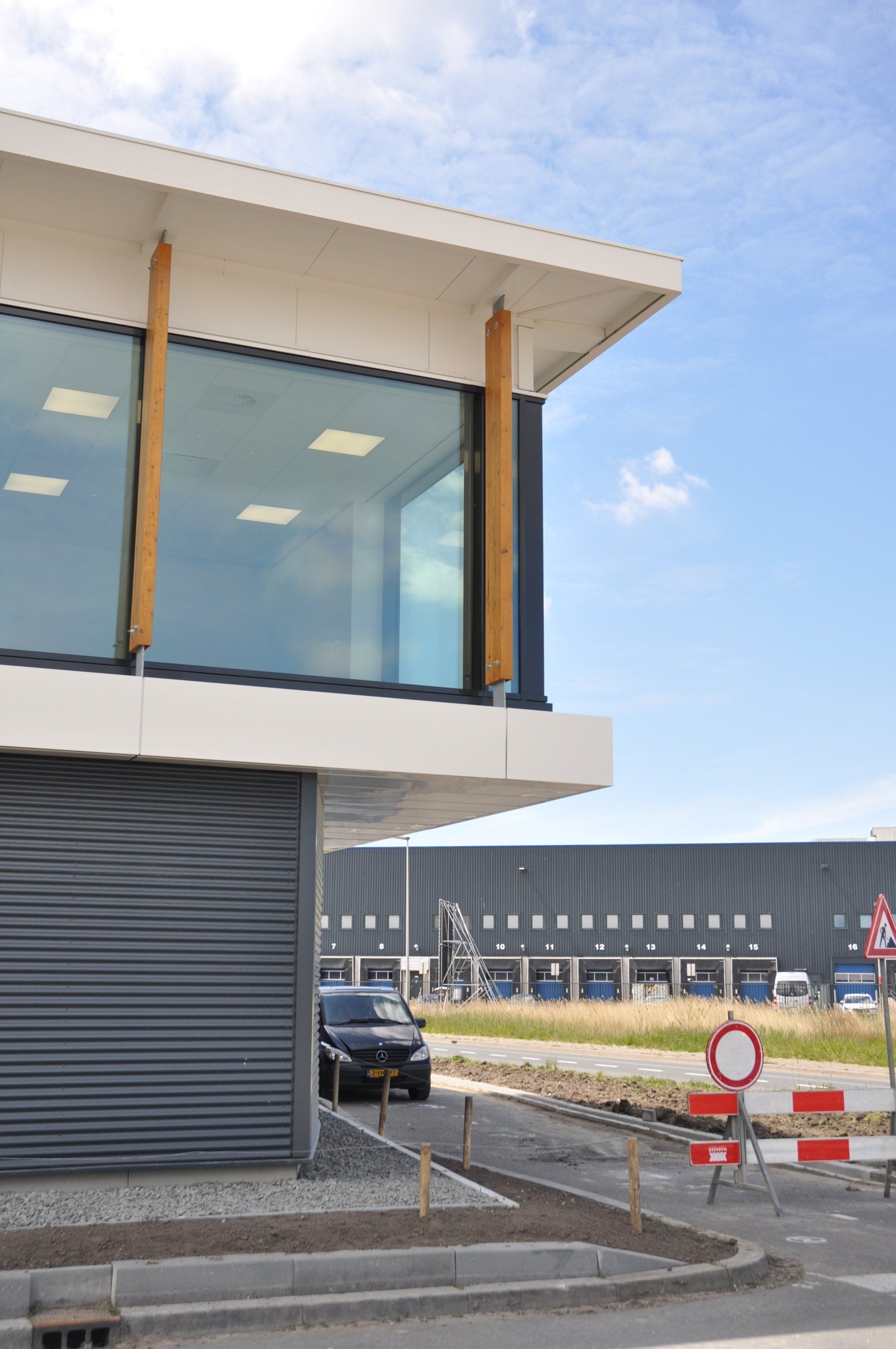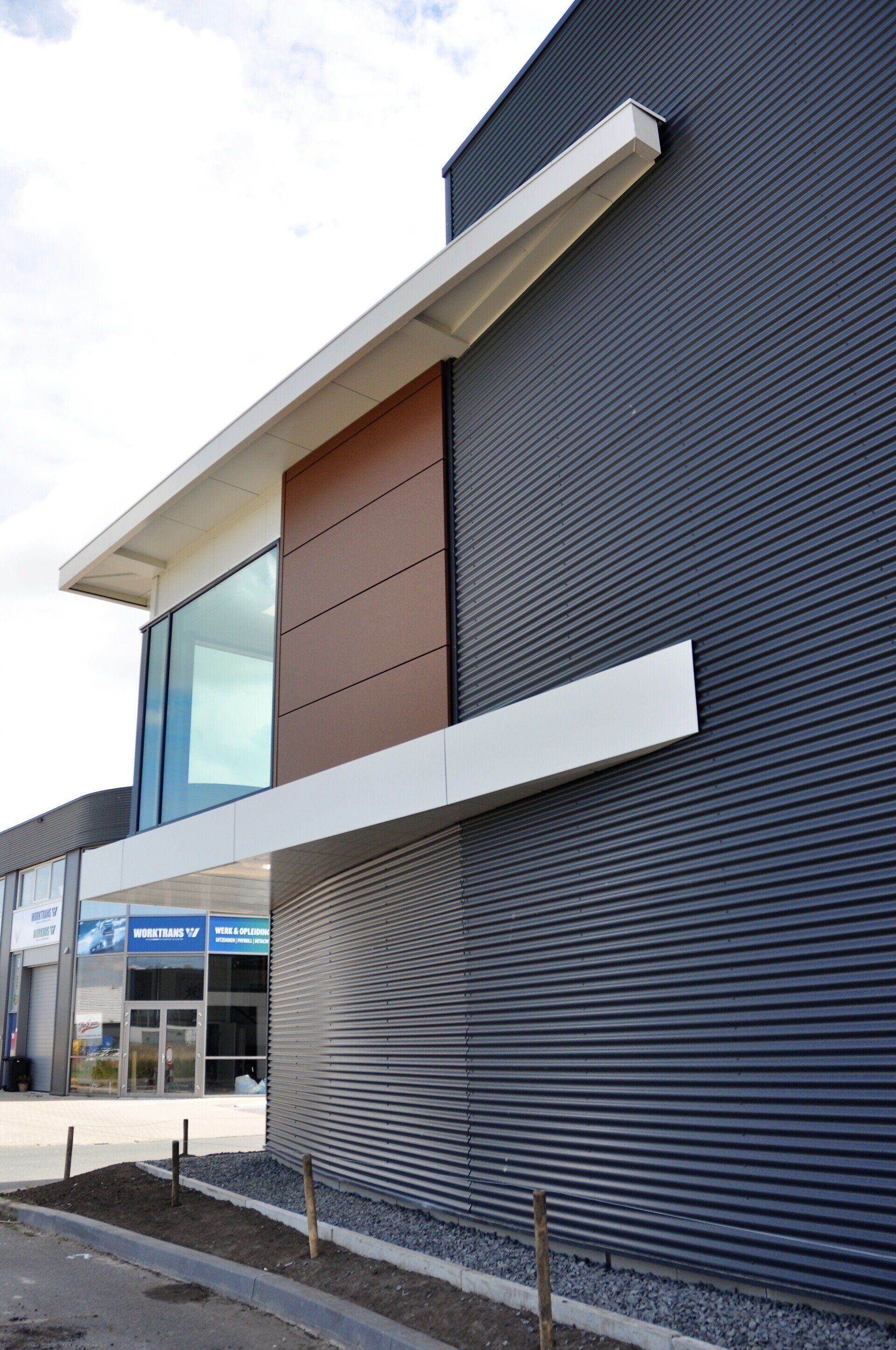 Gevel: Binnendoos B120.600 Ral 9002 met golfplaat 18/76 Ral 7016