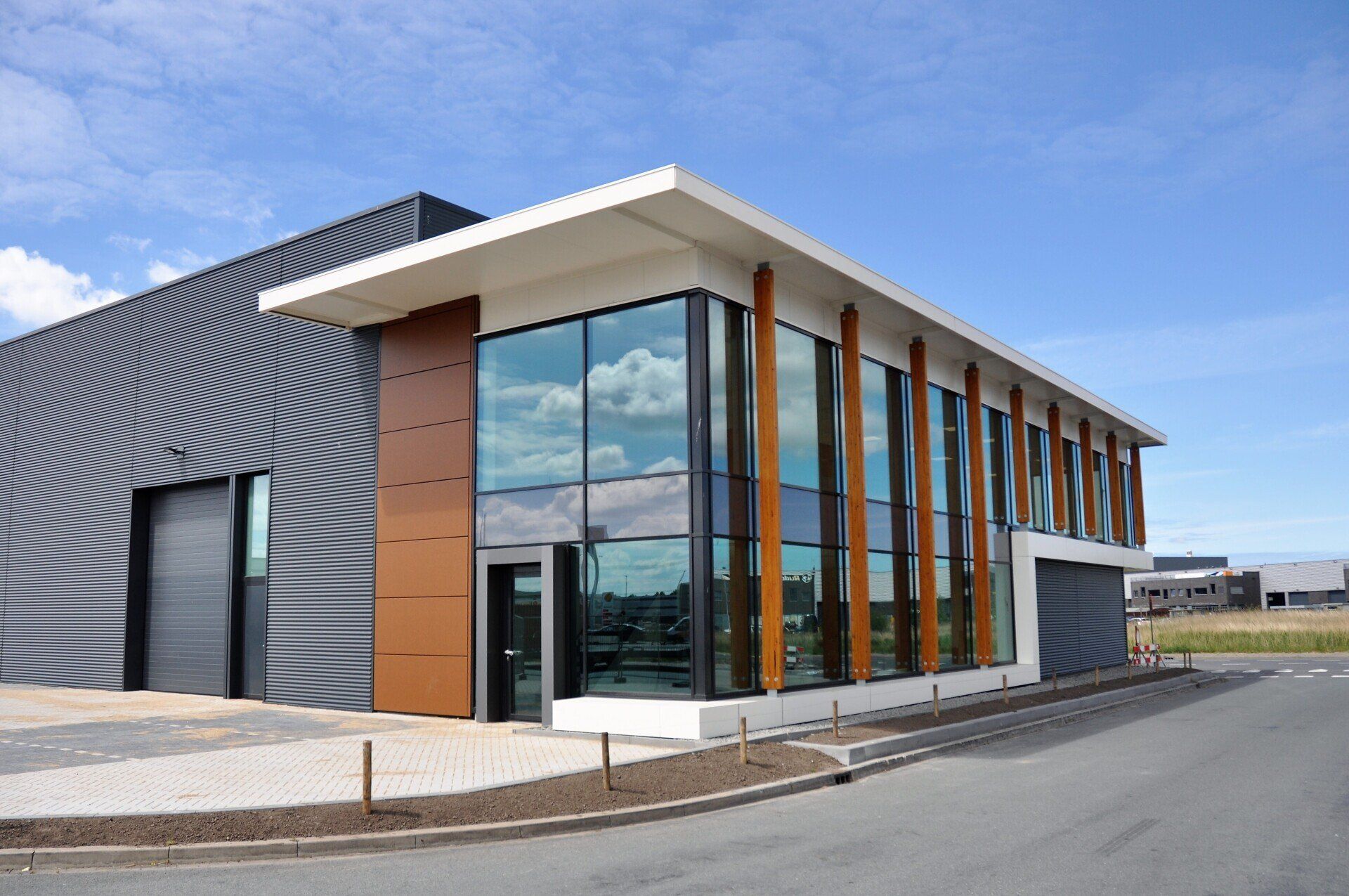 Gevel: Binnendoos B120.600 Ral 9002 met golfplaat 18/76 Ral 7016